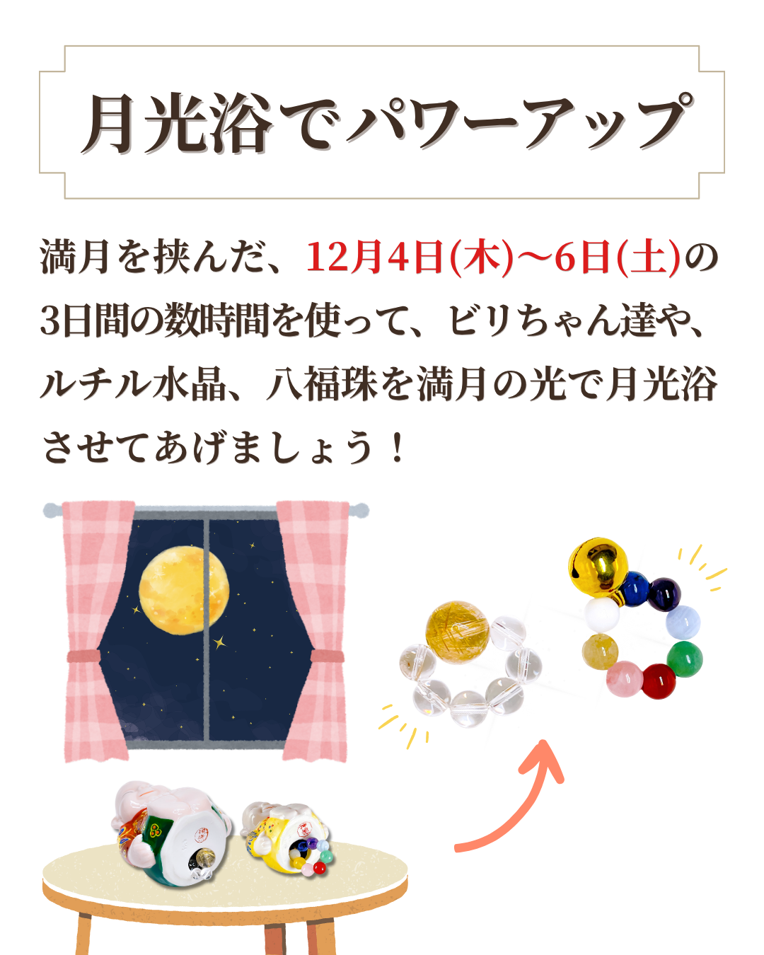 月のエネルギーでビリちゃんが浄化され、もっと活躍してくれますよ。