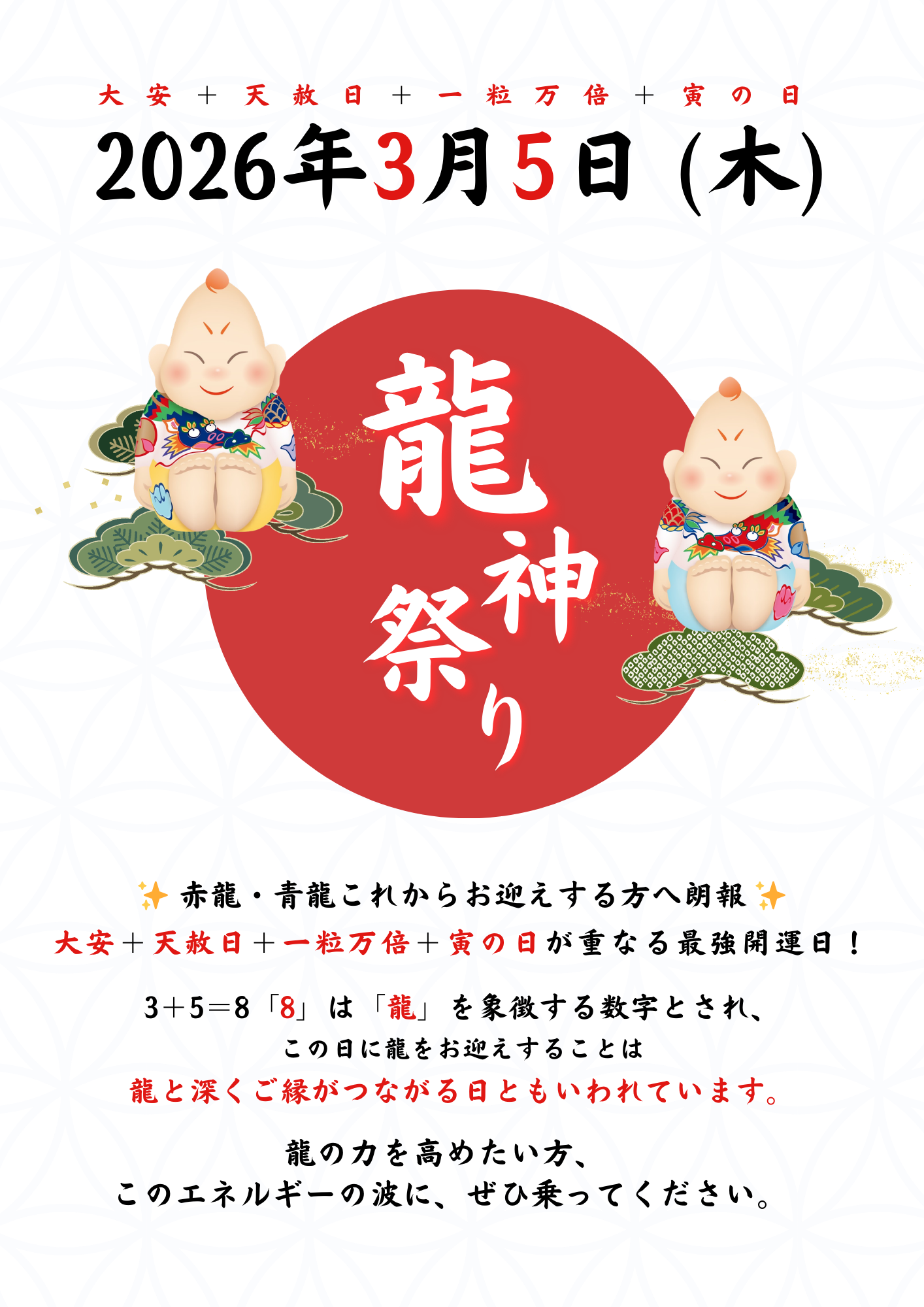● 5日(木)「大安+天赦日+一粒万倍日+寅の日」